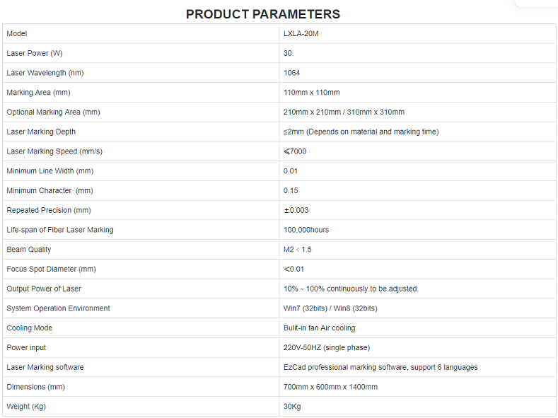 The desktop fiber laser marking machine isthe third generation laser marker system. It adopts optical fiber laser tooutput laser and realizes marking function through high speed scanninggalvanometer system. The fiber-optic laser marker features high electro opticconversion efficiency, air cooling, small size, materials and widely used inthe fields that have high requirement on depth, smoothness and fine, such asstainless mobile phone overlay, clock and watch ,mould, IC, mobile phonekeypad, etc. Bit map marking can carve beautiful pictures on the surfaces of metaland plastic, and the marking speed is 3-12 times of the speed of traditional firstgeneration lamp pump marker and second generation semiconductor marker. Fiberoptic is used to output laser, featuring high electro optic conversionefficiency, small size and high light beam quality.